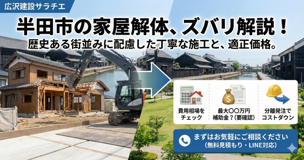 この記事では、半田市で多くの家屋解体を手掛ける私たちが、半田市の解体費用相場、驚きの補助金制度、そして遠方からでも安心して工事を任せるためのポイントを解説します。