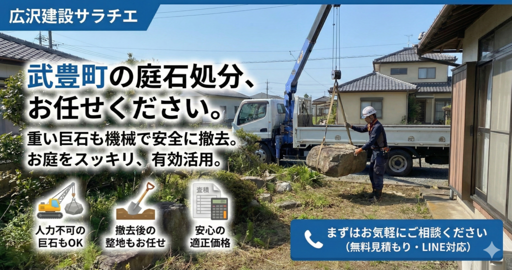 この記事では、武豊町で解体・外構工事を行う私たちが、庭石を処分するための費用相場、業者に頼む際の注意点、そして「解体ついで」にお得に処分する裏ワザ**について解説します。
