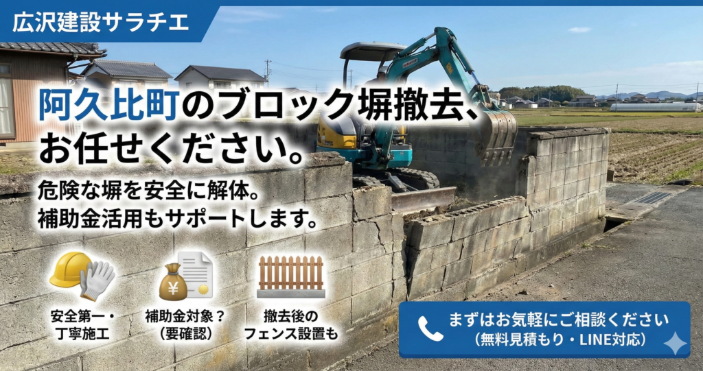 この記事では、阿久比町の解体・外構工事に強い私たちが、ブロック塀撤去の費用相場、阿久比町独自の最大20万円の補助金制度、そして撤去後のフェンス設置について分かりやすく解説します。
