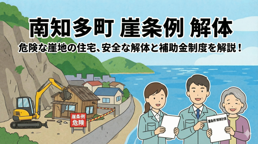 注意:傾斜地・がけ地にある物件でも、補助金の対象条件を満たせば利用できる可能性があります。必ず事前に南知多町役場に相談してください。